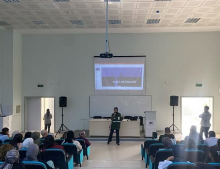 Yeşilay Gönüllü Yönetimi Müdürlüğü Müdür Yardımcısı Sayın Veysel Durak ve Şube Personeli İrem Yılmaz tarafından, Kovancılar Meslek Yüksekokulu öğrencilerine yönelik “Tütün Endüstrisi” ve "Akran Eğitimi" konulu kapsamlı bir sunum gerçekleştirilmiştir.